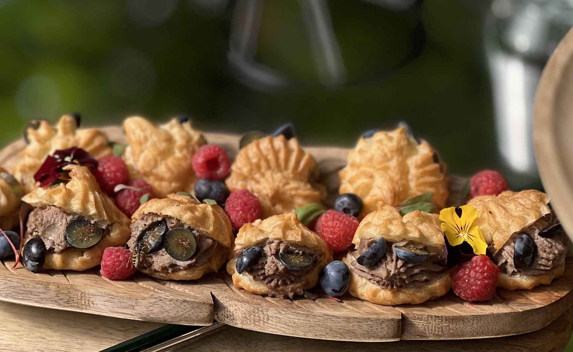 Воздушный шарик из теста с начинкой из паштета из куриной печени и вареньем из ягод