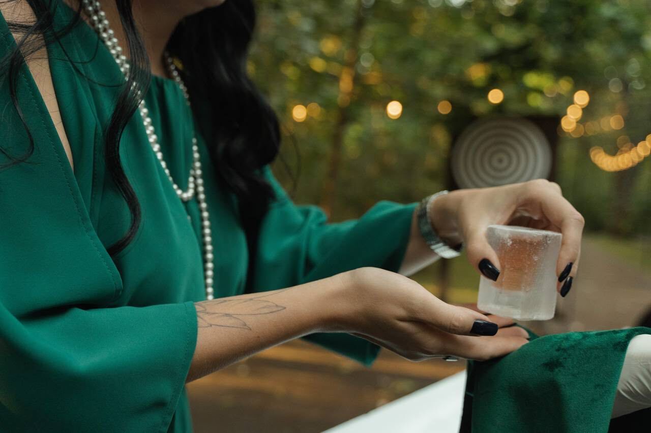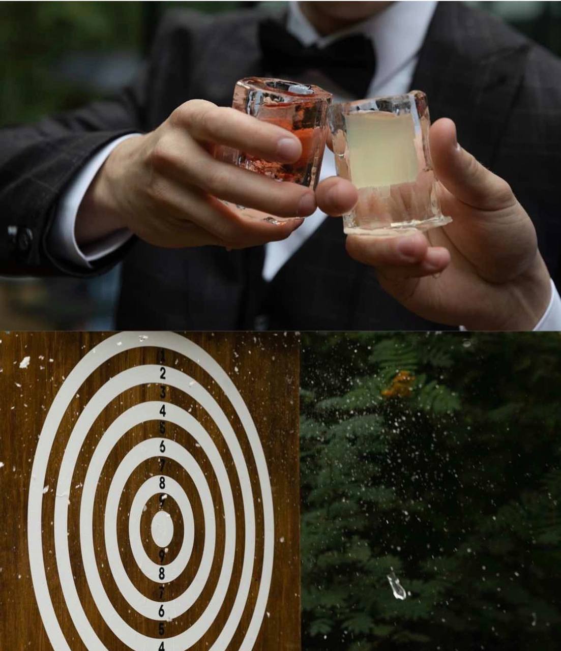 Гостей встречает приветственный drink в шоте изо льда, а также мишень, об которую его можно экологично, безопасно и с удовольствием расколоть!