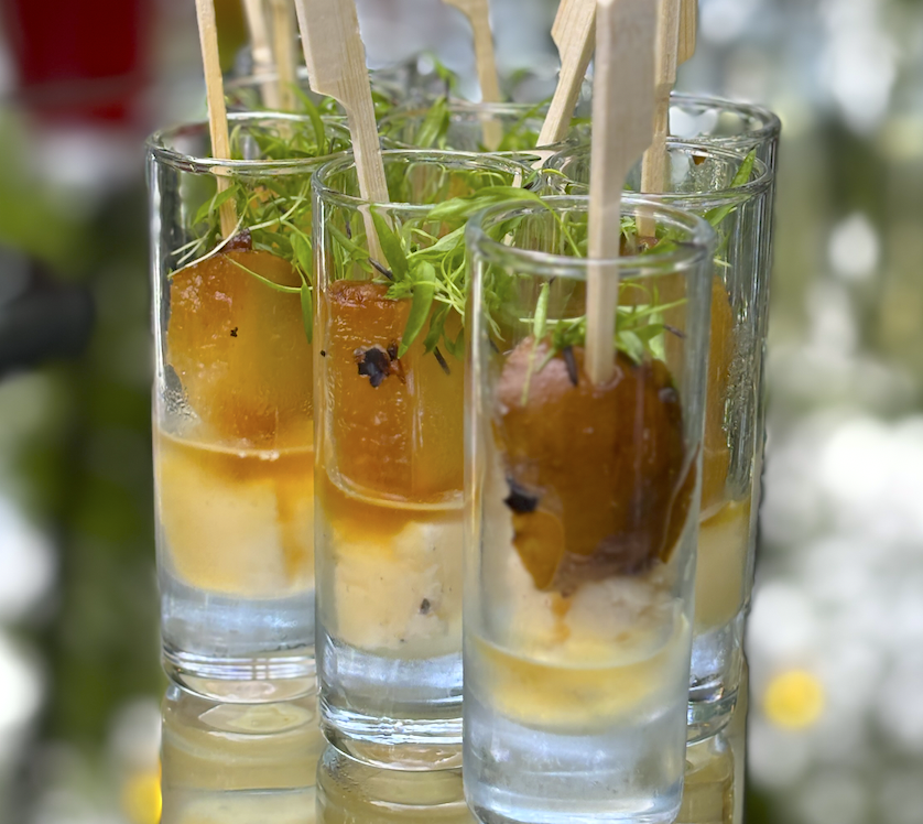 Запеченный мини спринг-ролл с печеными овощами и гаспаччо