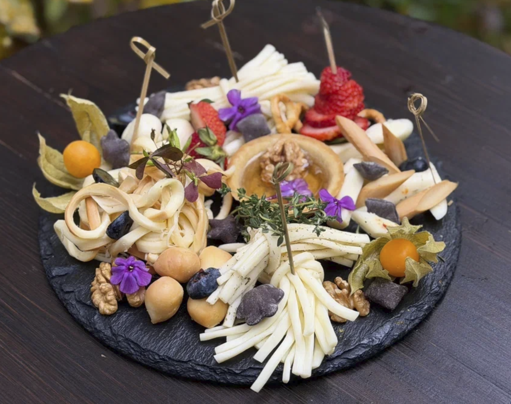 Стильная и аппетитная зона, которая станет украшением фуршета и порадует гостей изысканными вкусами. На станции будут представлены лучшие сорта сыров. Каждому из них сопутствуют идеальные дополнения — свежий виноград, орехи, мед и ягоды.