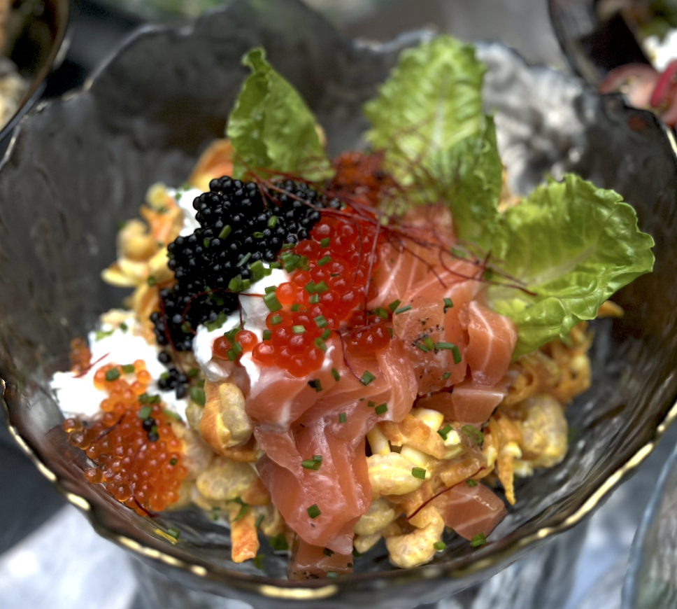 Воздушное тесто в сочетании с с/с лососем, творожным муссом и красной икрой