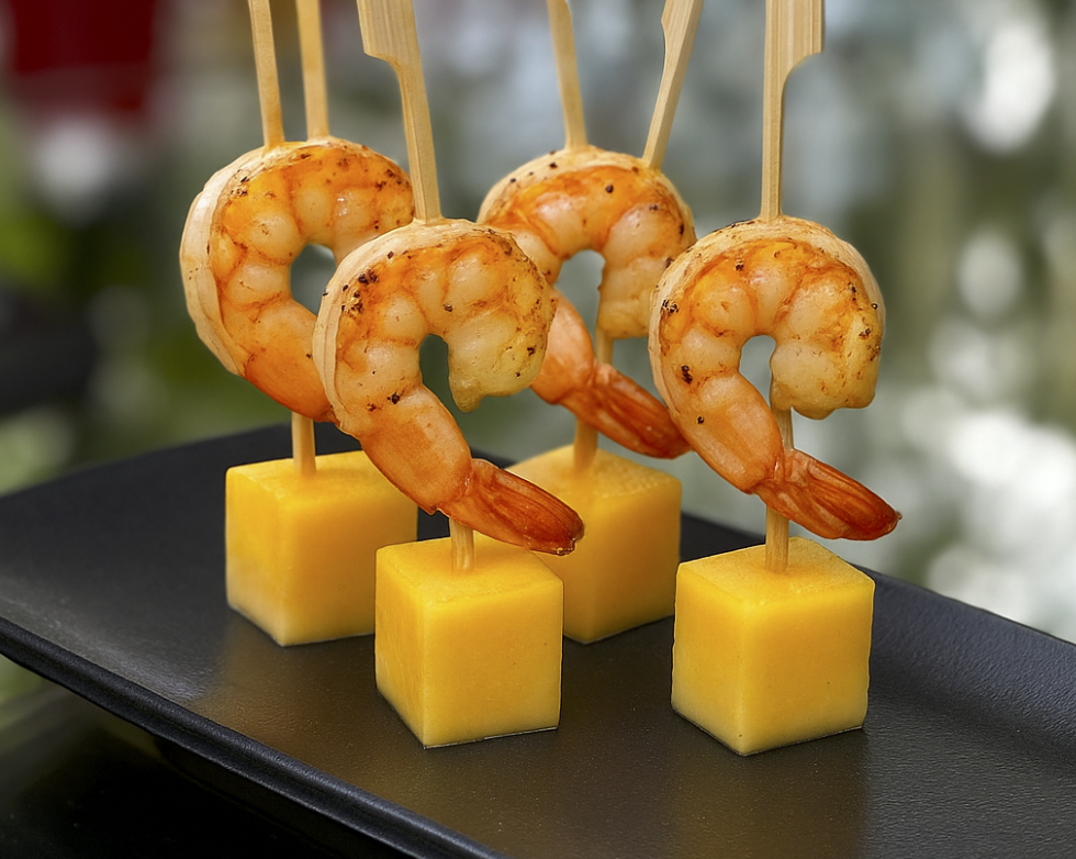 Валованчик с рубленной креветкой и манго под нежным муссом из сыра