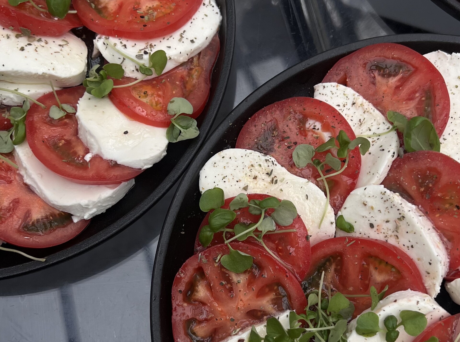 Нежный сыр Моцарелла с сочным помидорчиком Черри и листочком ароматного базалика