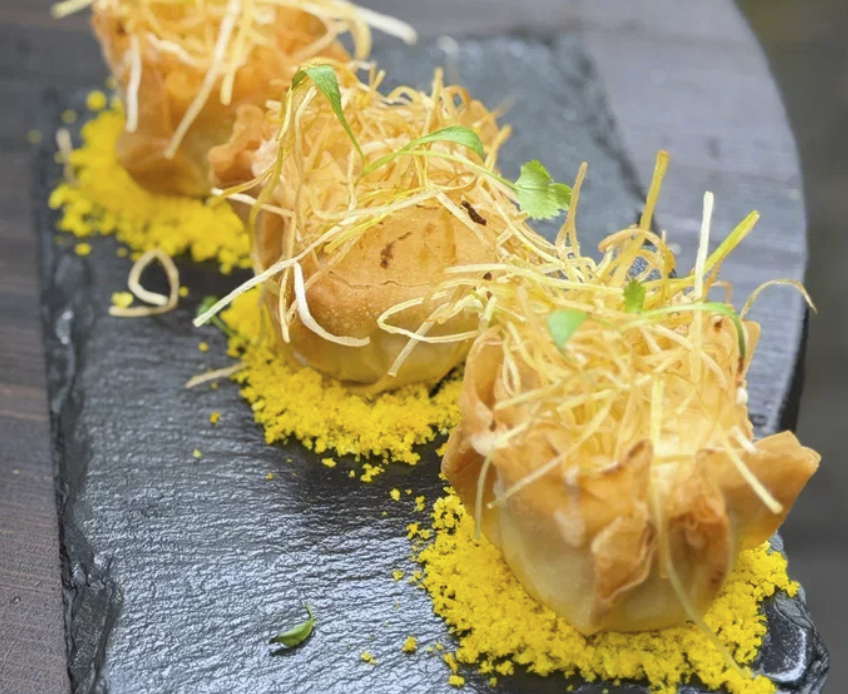 Запеченный мини-спринг ролл с креветкой и сырным карри