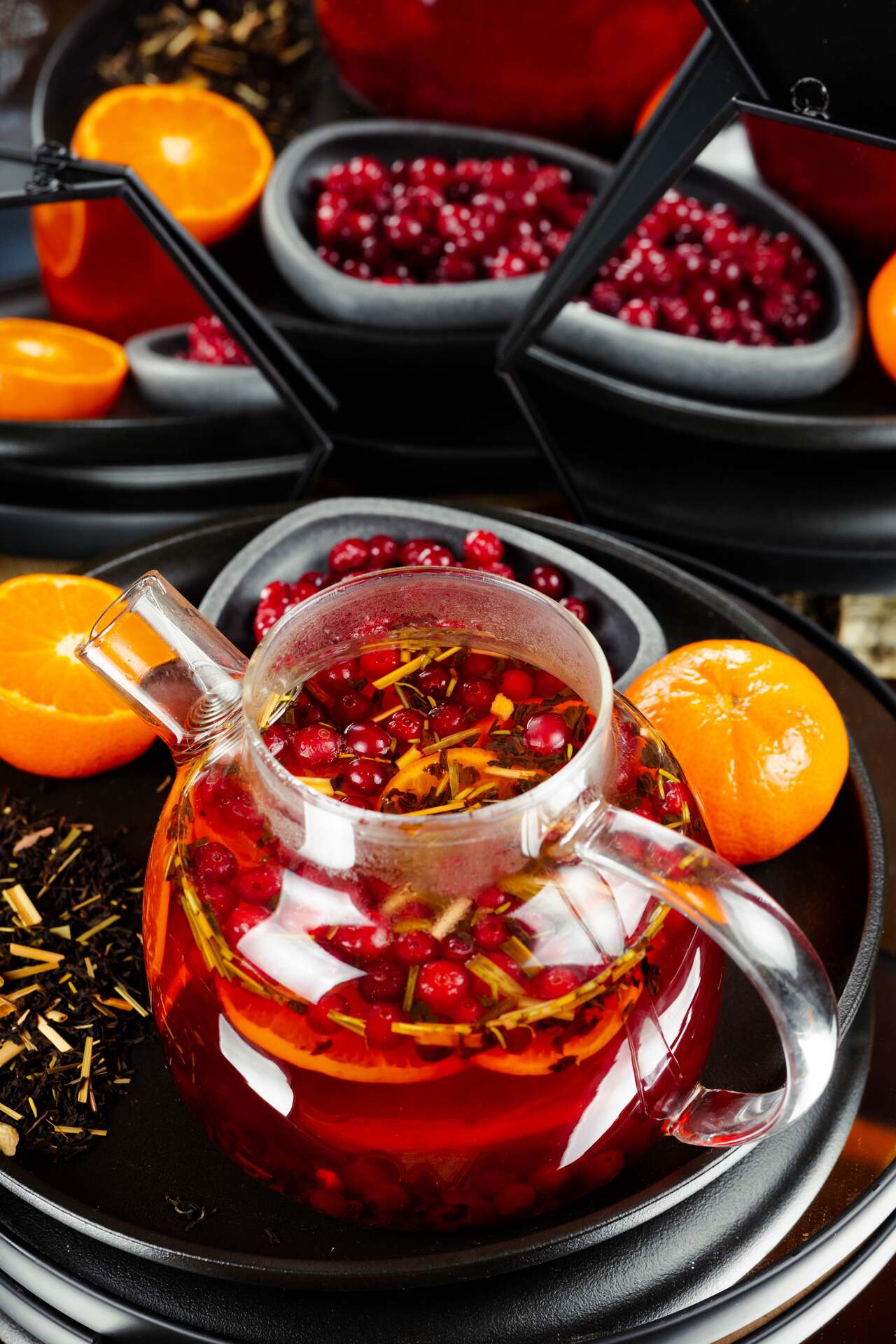 Каждый чайник — это отдельная история вкуса и аромата: бодрящие цитрусовые ноты, интересные цветочные послевкусия, пряные травы, сладость фруктов и ягод. Гости могут выбрать напиток по настроению, насладиться его ароматом и наблюдать, как чай раскрывается в прозрачных чайниках.